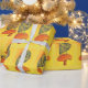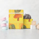 la peinture d'un hibou brouillé mignon se reposant sur un grand champignon orange avec un arrière - plan jaune fait ce papier d'emballage d'amusement.