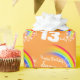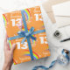 Papier d'emballage d'anniversaire dans un arc-en-ciel coloré avec des étoiles et la conception orange de ciel. Personnalisez ce document d'anniversaire de filles avec votre propres nom et âge 10 19. Lit actuellement l'été 13 de joyeux anniversaire aujourd'hui. Perfectionnez pour envelopper cadeau d'anniversaire d'adolescents spéciaux un 13ème. Uniquement conçu par Sarah Trett.