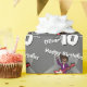 Papier d'emballage de garçons d'anniversaire dans la conception rockstar musicale grise, noire, pourpre, rouge et blanche de guitariste. Personnalisez ce document d'anniversaire d'étoile de garçons avec votre nom et âge. Lit actuellement le joyeux anniversaire Oliver 10 aujourd'hui. Uniquement illustré et conçu par Sarah Trett.