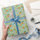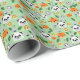 Le papier d'emballage a des visages animaux mignons du zoo. Pandas, tigres, rhinocéros, léopards et quelques chouettes sournois traînent dans les feuilles et les branches sur un arrière - plan vert doux. Fêtons avec de mignons visages d'animaux de zoo.