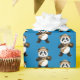 Papier d'emballage cadeau en couleur arrière - plan bleue avec une jolie impression d'ours en panda. Papier mat affiché. Customisez ce papier ou achetez tel quel.