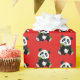 Papier d'emballage cadeau en couleur arrière - plan rouge avec une impression d'ours panda mignon. Papier brillant montré. Customisez ce papier ou achetez tel quel.