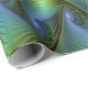 Papier Cadeau Etoile Abstraite, Bleu brillant Vert Or Fractal Ar