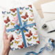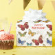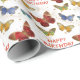De magnifiques papillons glittorieux en différentes couleurs volent à la surface de ce joli papier cadeau d'anniversaire. Il est difficile de voir tous les détails, mais le papier est recouvert de "poussière" dorée et de petites étoiles dorées apparaissent entre les images de papillon. Votre texte personnalisé est en rouge, et il est facilement personnalisé ou changé à tout ce que vous voulez. Très jolie pour les enfants ou les anniversaires adultes.