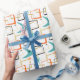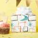 Ajoutez une pop de couleur à vos cadeaux avec ce papier d'emballage rétro funky. La motif est composée de carrés abstraits, d'étoiles et d'un boomerang aux couleurs bleu turquoise, orange, or et noir. Cela va égayer votre don de don!