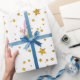 Papier Cadeau Étoiles célestes modernes blanches et dorées