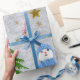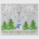Papier Cadeau étoiles d'or brillant, bonhomme de neige et arbre