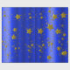 Un papier d'emballage de vacances avec une diffusion d'étoiles dorées sur un arrière - plan bleu métallique pour ajouter un peu de gaieté à vos célébrations de Noël cette année.