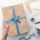 Papier Cadeau étoiles en chute rose stylisée strass bleu motif