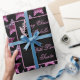 Black and Pink Red Stars Motif Black Christmas Chic Elegant Christmas Season ou votre occasion Papier cadeau enveloppant