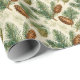 Fir branches and large cones, resembling a vintage botanical print, cover this holiday wrapping paper. Looks country and boho, traditional, classic, and elegant.