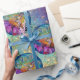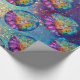 Vibrant, capricieux, fleur coloré faery, peinture acrylique en blanc, bleu rose vert jaune couleurs, éclat d'or