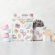 Apportez une touche magique à chaque fête avec ce design fantasque d'anniversaire d'aquarelle. Doté de châteaux, couronnes, baguettes, talons hauts, ballons, cupcakes, cadeaux et texte festif "Joyeux anniversaire", ce motif enchanteur est parfait pour envelopper les cadeaux dans le style et la joie.