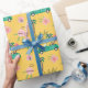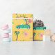 Célébrez la saison des fêtes avec notre papier d'emballage tropical, festif et coloré amusant. Notre design tropical festif présente un arrière - plan jaune vif et ludique avec un motif de Noël qui incorpore des rubans, une voiture convertible turquoise verte portant des palmiers dans les cadeaux de fond, des ornements, et les mots fa la la et Let's roll. Toutes les oeuvres contenues dans ce papier d'emballage topique de Noël et convertible girly et amusant sont dessinées à la main par Moodthology Papery.