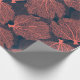 Motif vectoriel en coraux de ventilateur en couleur corail vivant sur arrière - plan bleu foncé.