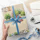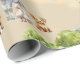 Farm scene wrapping paper on a roll with length selections. Beige color with red barns and old farmhouse design. Farm animals, donkeys, goats, sheep, ducks, dogs, pigs and chickens in coops fill out the design. Lush, green trees add more interest and color. The seamless, repeating pattern will print on any size roll, of high quality paper, to use for crafts or wrapping gifts. This fun pattern is perfect for decorating a child's room.