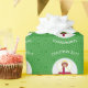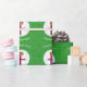 Faroe Islander Flag Christmas angel personalized wrapping paper. Design features an angel, dressed in the flag of the Faroe Islands inside a white circle of squiggly squares. Background is green squiggly squares. Personalized with name, year, and holiday, or whatever you wish. Wrap your holiday gifts and share your heritage or travel plans at the same time.