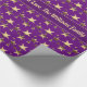 Étoiles de Noël Motif Faux Gold Violet violet élégant Papier cadeau de Noël avec le texte personnalisé "We Wish You A Joyeux Noël! With Love, The Williams Family", vous pouvez modifier ou supprimer le texte