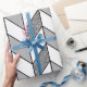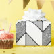 Ce papier d'emballage présente une élégante conception de chevrons avec un motif géométrique en  d'os de héron en parties scintillant blanche et faux argent avec des lignes noires.