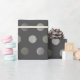 Enveloppez vos cadeaux avec style avec cette parties scintillant fausse argent et des pois gris foncé de taille moyenne sur du papier d'emballage. Idéal pour Noël, cadeaux et baby showers de fête.