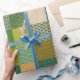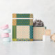 Un rouleau de Giftwrap chic, avec un motif Faux Patchwork de motifs tribaux, rayures et pois en vert, rouge rouillé, bleu marine et or ancien ; de la collection Posh & Painterly "Jungle Drums".