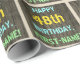 Cette conception amusante de papier d'emballage sur le thème de l'anniversaire comporte un message comme "HAPPY 48th BIRTHDAY, FIRST-NAME!", où le nom peut être personnalisé. L'arrière - plan présente un motif rustique, brun, imitation bois de grain. Le texte du message personnalisé présente des couleurs comme le bleu, le jaune et le vert, et il a un aspect inspiré de celui du lettrage peint et recouvert de pochoirs. Un papier comme celui-ci pourrait peut-être être utilisé pour envelopper les cadeaux d'anniversaire donnés à quelqu'un qui célèbre son quarante-huitième anniversaire. [~Z0000293]