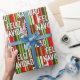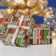 Moderne et élégant design motif à thème de Noël qui mêle un arrière - plan à rayures inégales dans les couleurs classiques des vacances avec "Joyeux Noël" en espagnol. Design d'emballage unique pour les cadeaux originaux.