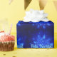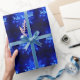 Un essaim de flocons de neige fractaux bleus. Le texte "Feliz Navidad" apparaît en bleu et blanc éclatant.