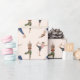 Emballez les cadeaux avec ce papier d'emballage à thème yoga conçu par Destei. Le design présente un fond beige clair avec des illustrations répétées de femmes en train de faire du yoga dans différentes postures. L'une se fond dans la posture du danseur, une autre tient la posture du chien tête en bas et la troisième est en équilibre dans la posture de l'arbre. Chacune porte une tenue différente avec des combinaisons de couleurs rose et noir, bleu et blanc, et vert et marron. Le fond beige garde le design propre et équilibré tandis que les postures illustrées apportent du mouvement et de l'énergie au motif.