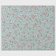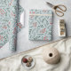 Campagne agricole bleu poussiéreux, feuillage rouge et vert foncé, couronne, feuille, motif rustique joli papier d'emballage cadeau de vacances. Idéal pour Noël et les fêtes.