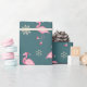 Papier Cadeau Festif flamingo motif de Noël avec des flocons de