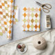 Papier Cadeau Festif Retro Orange Beige Diamond Motif