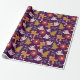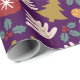 Papier Cadeau Festif Violet Arbre de Noël Hommes en pain d'épice