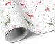 Papier Cadeau Festin rennes et flocons de neige - Rouge & Vert
