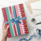 Éclairez vos cadeaux de vacances avec ce papier d'emballage rayé amusant et festif. Joyeux motif de Noël géométrique avec un mélange coloré de rayures décorées, cloches de jingle et arbres de Noël. Oeuvre originale de Marketa Stengl.