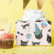 Un motif doux et drôle avec des chats adorables et à l'aspect cool portant des casquettes cônes colorés de fête d'anniversaire et des lunettes de soleil pour enfants. Elle est entourée de ballons de plage et comprend des chats calico, des harlequins et des tuxedo. Le arrière - plan est rose rose pâle, adapté aux filles et aux adolescents. Ce superbe papier d'emballage cadeau sera le point fort de la boîte cadeau.