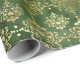 Papier Cadeau Festive Green & Gold Foil hiver Noël Damas