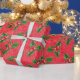 Festive baies sainte et feuillage sur un arrière - plan rouge avec étoiles dorées.
