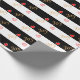 Papier Cadeau Festive Joy Motif de coeur sur rayé noir & blanc