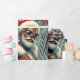 Père Noël et un compagnon sont prêts à célébrer, tous deux vêtus de costumes de Noël élégants. Elles s'alignent sur un fond de lumières et de décorations de vacances, prêtes pour un rassemblement festif.