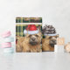 C'est l'enveloppement cadeau de vacances parfait pour l'amoureux des chiens et la maman de Cairn Terrier, ils sont sûrs de baguer avec plaisir quand vous enveloppez leur cadeau dans ce plaid rouge et vert avec un Cairn expressif qui porte un chapeau de Père Noël.