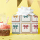 A cheerful, textured holiday pattern featuring uniquely styled bows in red, green, and yellow tones, arranged in a festive grid layout. Each bow showcases a distinct design, adding charm and playfulness to seasonal décor, wrapping, and gifts.