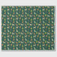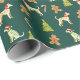 un papier d'emballage sur le thème de Noël avec un motif répétitif. Le motif est constitué de plusieurs éléments, dont des whippets portant des chapeaux de Père Noël rouges et des foulards rouges, des arbres de Noël verts décorés d'ornements rouges, des hommes en pain d'épice et des sucres de canne. La couleur arrière - plan du papier d'emballage est vert foncé, ce qui contraste agréablement avec les éléments colorés. Le design est festif et fantaisiste, ce qui le rend approprié pour envelopper les cadeaux de Noël, surtout pour les amoureux de les chiens ou ceux qui apprécient un thème de vacances ludique.
