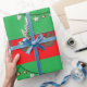 Enveloppement cadeau de Noël unique ou décoration avec des paresseux amusants sur un arrière - plan rouge et vert festif.