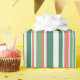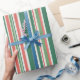 Un emballage cadeau de vacances rayé moderne et simple rétro. Bande verticale vintage et colorée. Bandes classiques vertes, rouges et blanches de Noël.