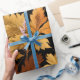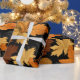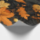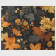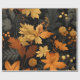 Un design d'automne saisissant, avec des feuilles audacieux et riches en jaune doré et orange brûlé, dressé contre un arrière - plan noir profond. Les détails complexes des feuilles, ainsi que l'inclusion subtile des baies et des fougères, créent un sentiment de chaleur et de texture. Le feuillage vert foncé et gris muet ajoute de la profondeur, faisant ressortir les couleurs automnales vibrantes, encapsulant l'essence de la saison d'automne avec élégance.