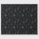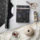 Un papier d'emballage floral noir avec un motif de feuilles de fougères et de fleurs dans un motif répétitif noir et sobre moderne