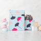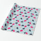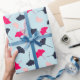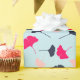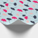Ce papier d'emballage présente une impression de tous les feuilles de ginkgo. Les graphismes propres et modernes sont en bleu marine, magenta et rose vif et sont placés contre un arrière - plan bleu clair.