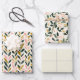 Papier d'emballage de Noël sur trois feuilles, deux à motifs et une couleur solide correspondant à l'arrière - plan motif