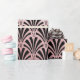 Ce papier d'emballage élégant comporte un motif rose de feuille d'or de faux dans un style d'art déco, sur un arrière - plan noir. Veuillez noter que la conception est imprimée dessus et ne contient pas la feuille d'or physique réelle.